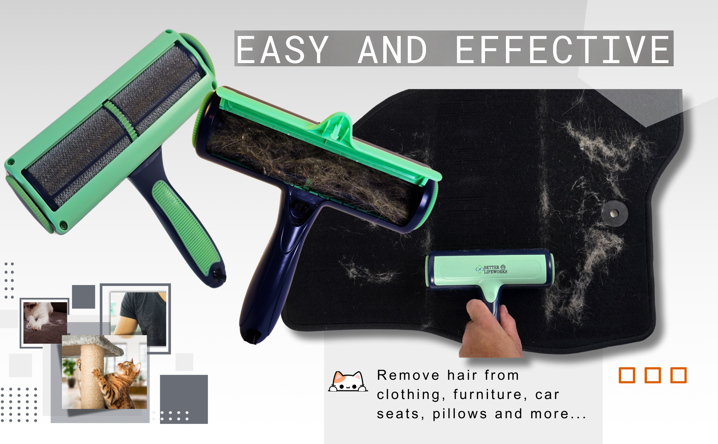 - It’s easy to clean, durable, and perfect for anyone seeking a sustainable solution for managing pet hair. Say goodbye to sticky tape waste and hello to a cleaner, stress-free home! The Pet Hair Remover truly makes a difference.