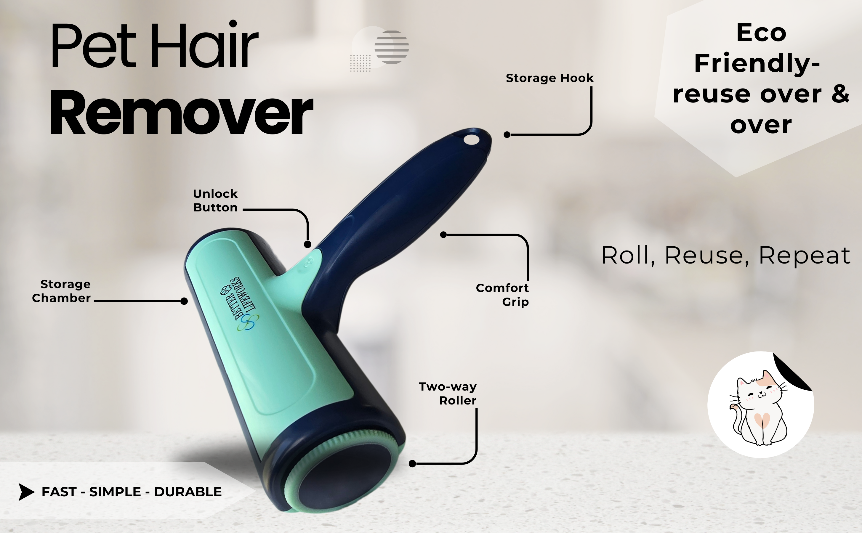- If you’re a pet parent, you know the struggle of keeping your home fur-free. Our Reusable Pet Fur Roller is a game-changer for removing pet hair.